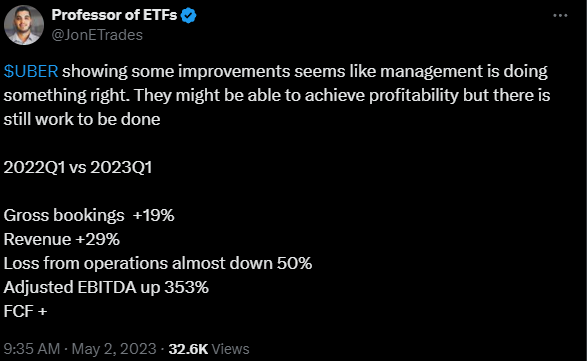 We have been discussing UBER and its improvement for some time now, expanding their business and adding segments such as Uber Eats (which accounts to almost half of its revenue) has allowed the company to become the industry leader