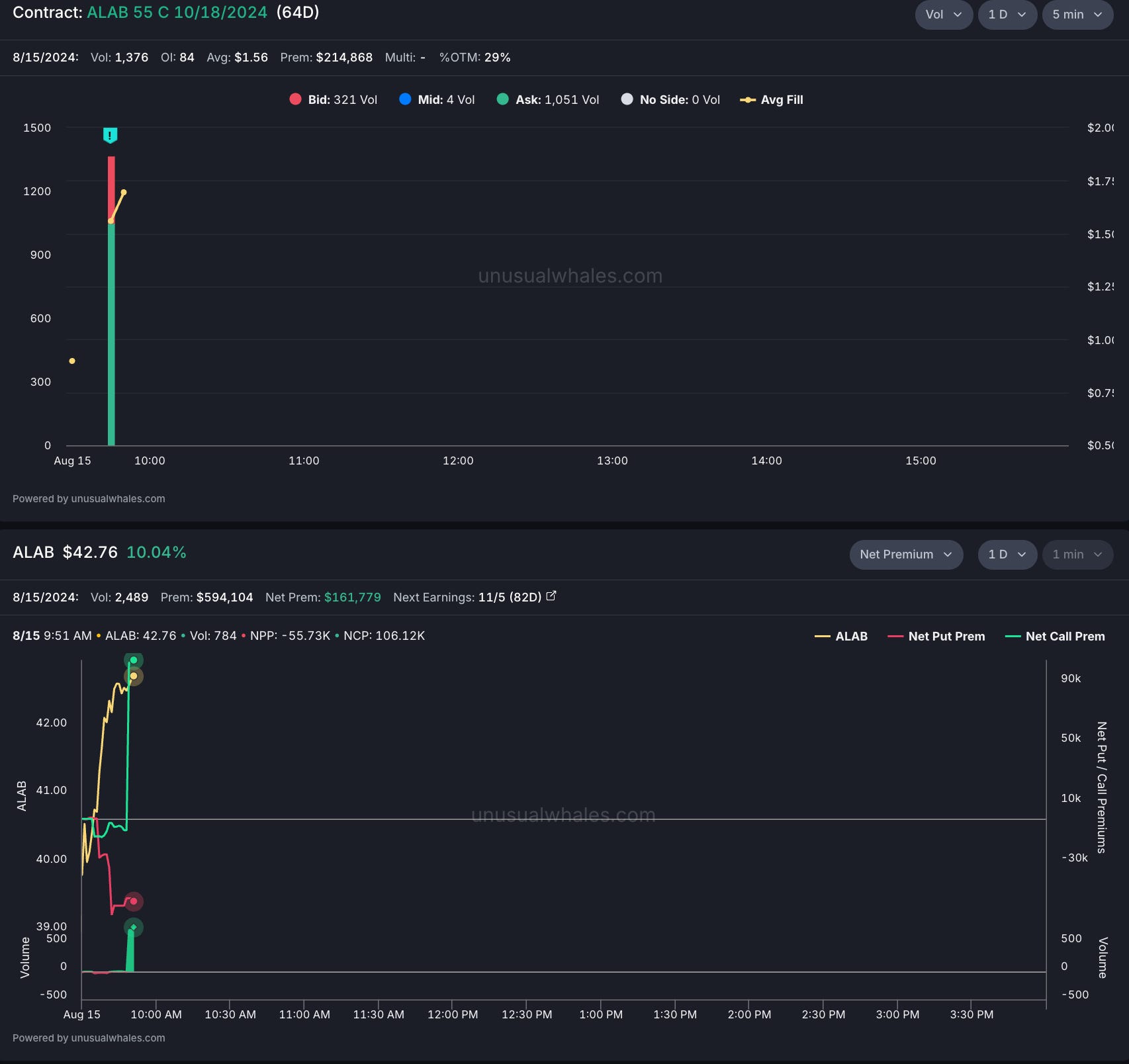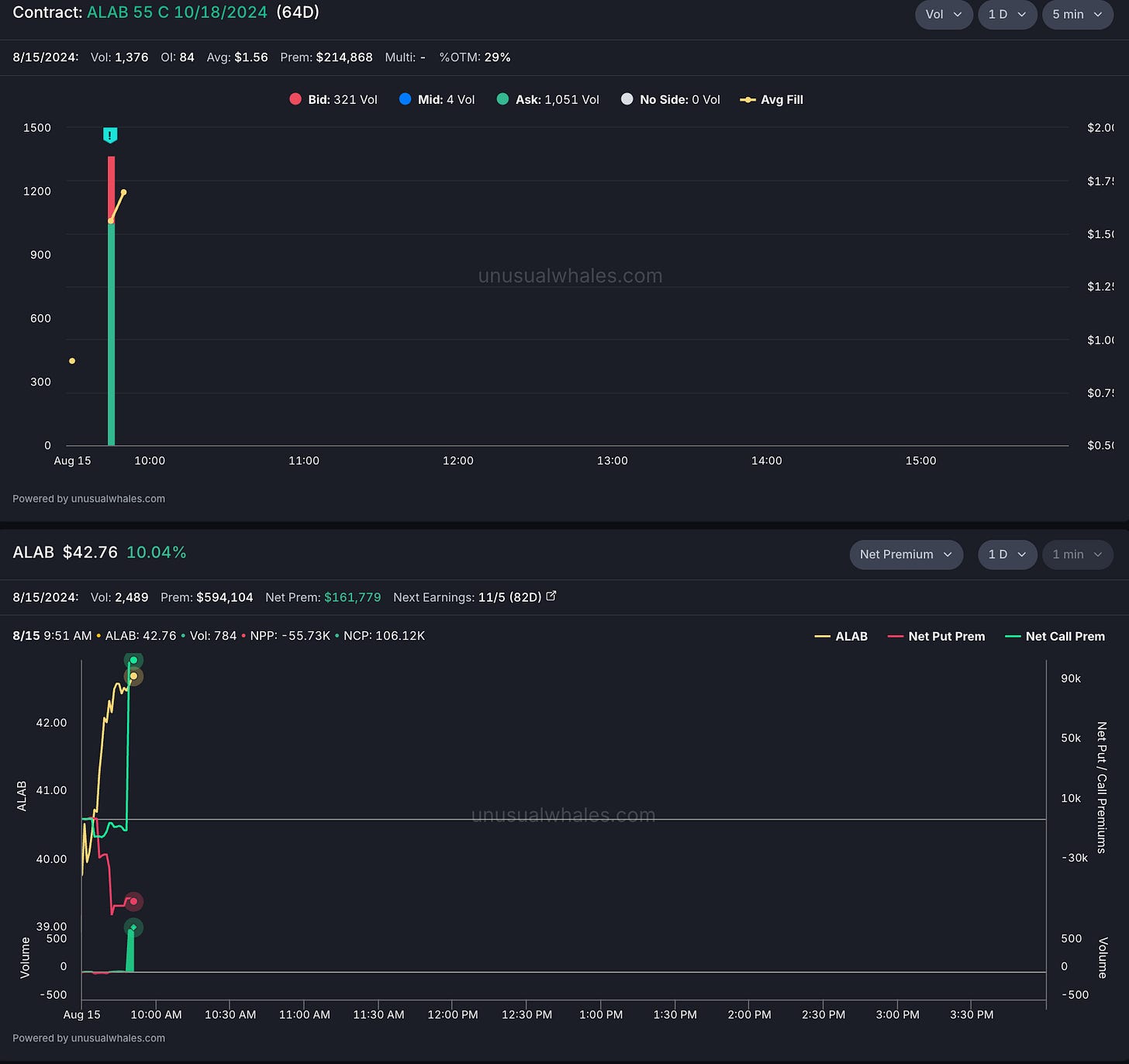 The call flow is pretty clean and it is showing the whales opening calls 29% OTM. It doesn’t seem like these whales are scared of a pullback even after the big move to the upside they are still wanting more and tagging higher strikes such as the 55C.