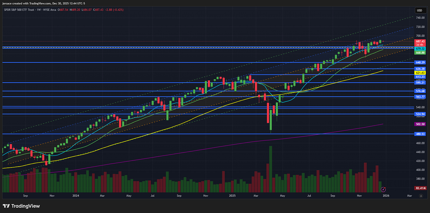 The S&P 500 returned approximately 17-19%, marking its third consecutive year of double-digit gains. The Nasdaq Composite climbed over 21%, and the Dow added around 14%. We came within striking distance of the historic 7,000 milestone on the S&P 500, hitting an all-time intraday high of 6,945 during the Christmas rally. The market proved resilient, muscling past the April tariff chaos, rate cut speculation, and concerns about an AI bubble bursting.