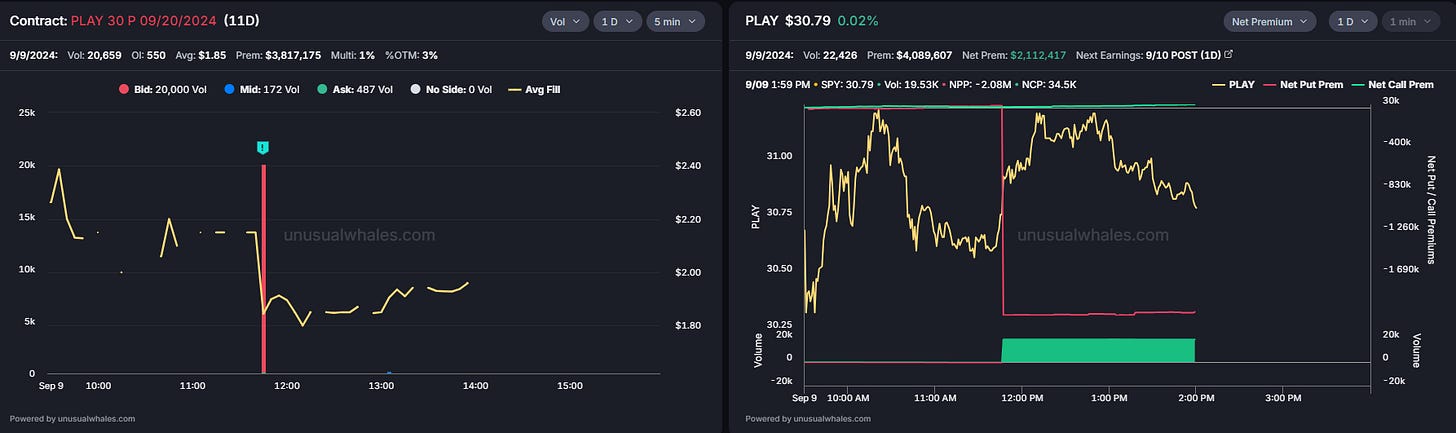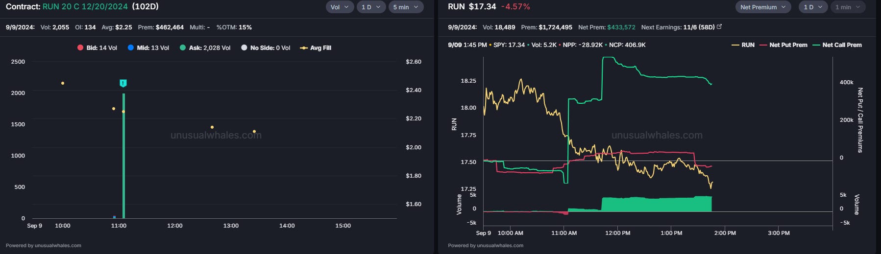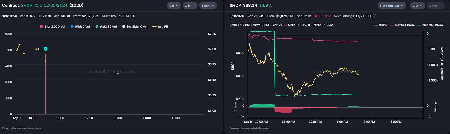 This trader opened 2k contracts with a $450k cost basis, speculating that the stock price will go up and placing a bet with calls that are 15% OTM. The stock has dropped 20% in the past couple of weeks, mainly following the big tech selloff. But let’s not forget that it had a run of +50% in August after the company announced its 2024 Q2 Earnings. The company released great numbers that motivated investors, announcing a cash generation of $217 million in Q2, introducing a cash generation guidance of $350 million to $600 million in 2025, and reiterating cash generation guidance of $50 million to $125 million in 2024 Q4.