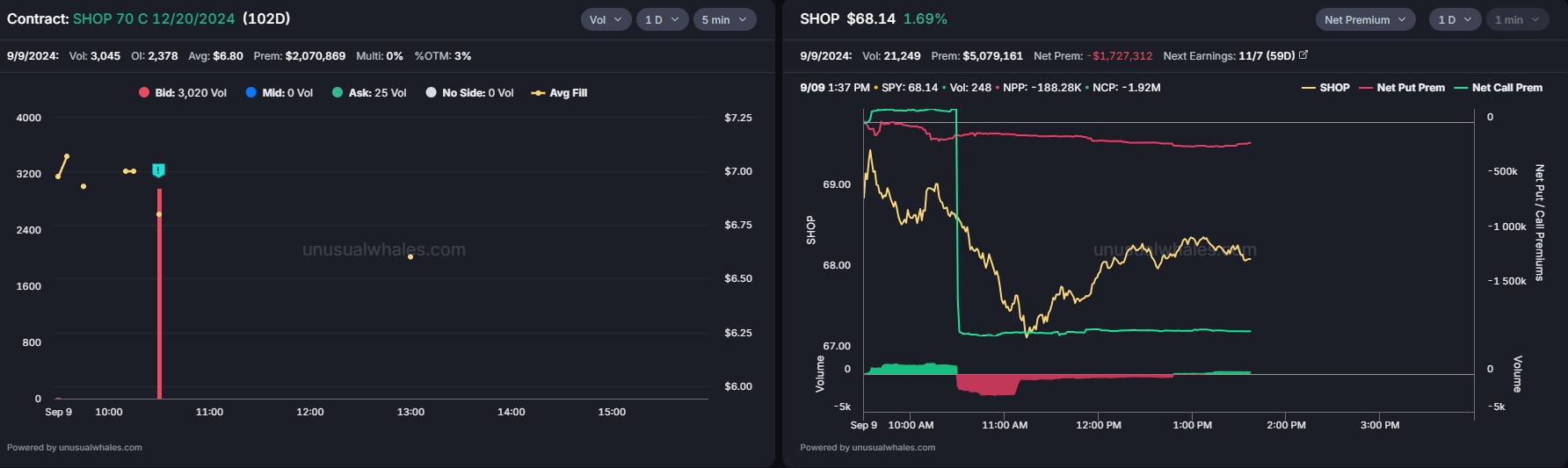 Vol: 3,045 OI: 2,378 Avg: $6.80 Prem: $2,070,869