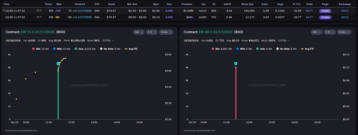 EW 0.00%↑ Call Debit Spread: 75C BTO & 90C STO 01/17/2025 Exp.