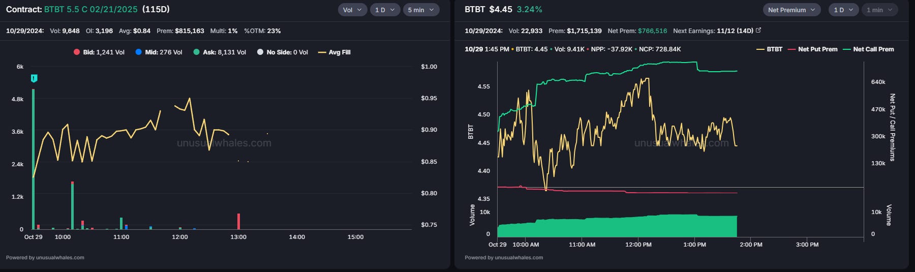 BTBT 0.00%↑ 5.5C 02/21/2025 Exp.
