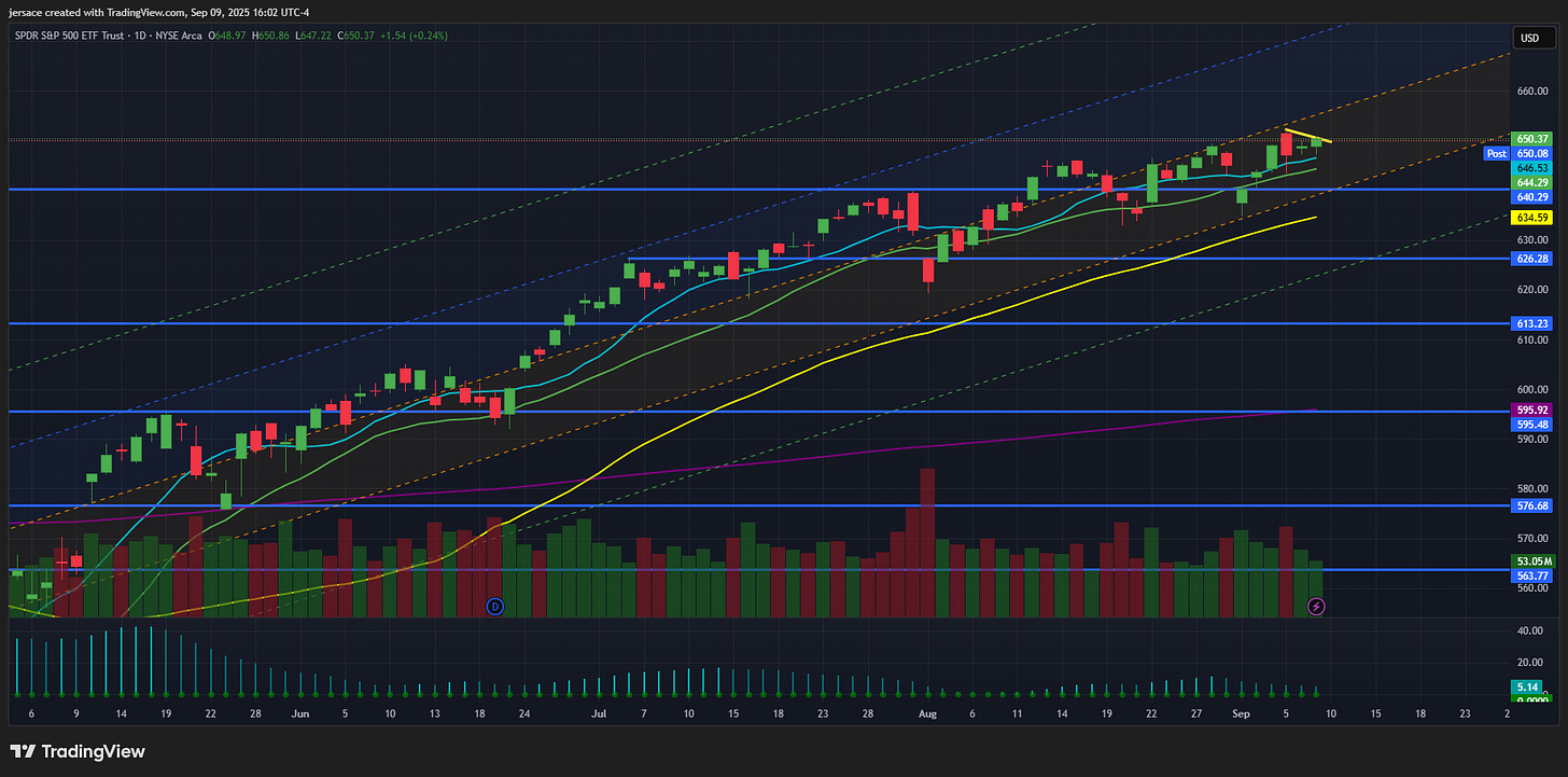 Above all relative moving average’s, within the balanced STD range, and ready for new highs barring negative data with PPI / CPI later this week. SPY is stable and contained, just under all-time highs. The market’s waiting on data, but the trend’s intact. If upcoming inflation prints stay tame, we could break higher - if they come hot, expect some chop/drop. All eyes glued to the CPI print at week’s end - no room for noise ahead of that.