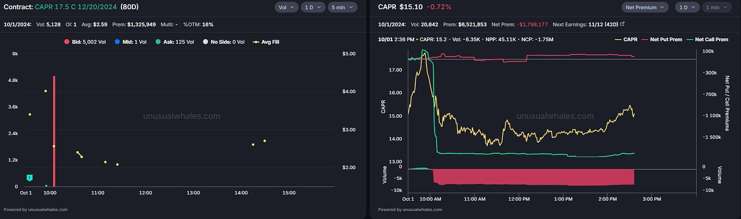CAPR 0.00%↑ 17.5C STO 12/20 Exp.