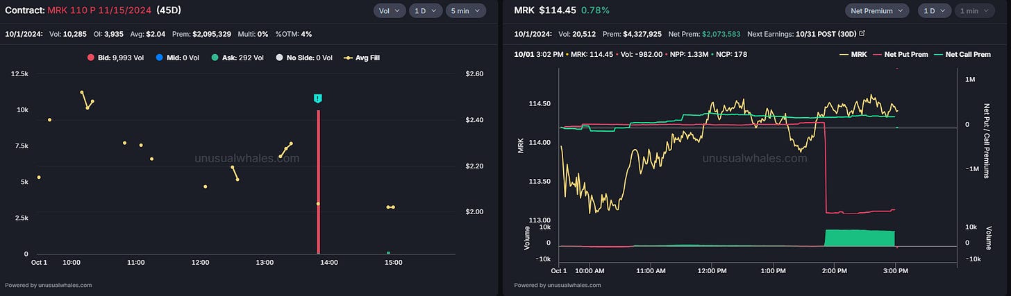 Hello folks - we are officially in the final stretch of 2024 and what better way to start the fourth quarter than non-stop notifications of war mongering and fear posts. The middle east is in shambles and the U.S. markets showed weakness throughout the session. Ultimately, we had some data today that was relatively mixed and didn’t help with the previously mentioned war activity. Regardless, people are buying options.